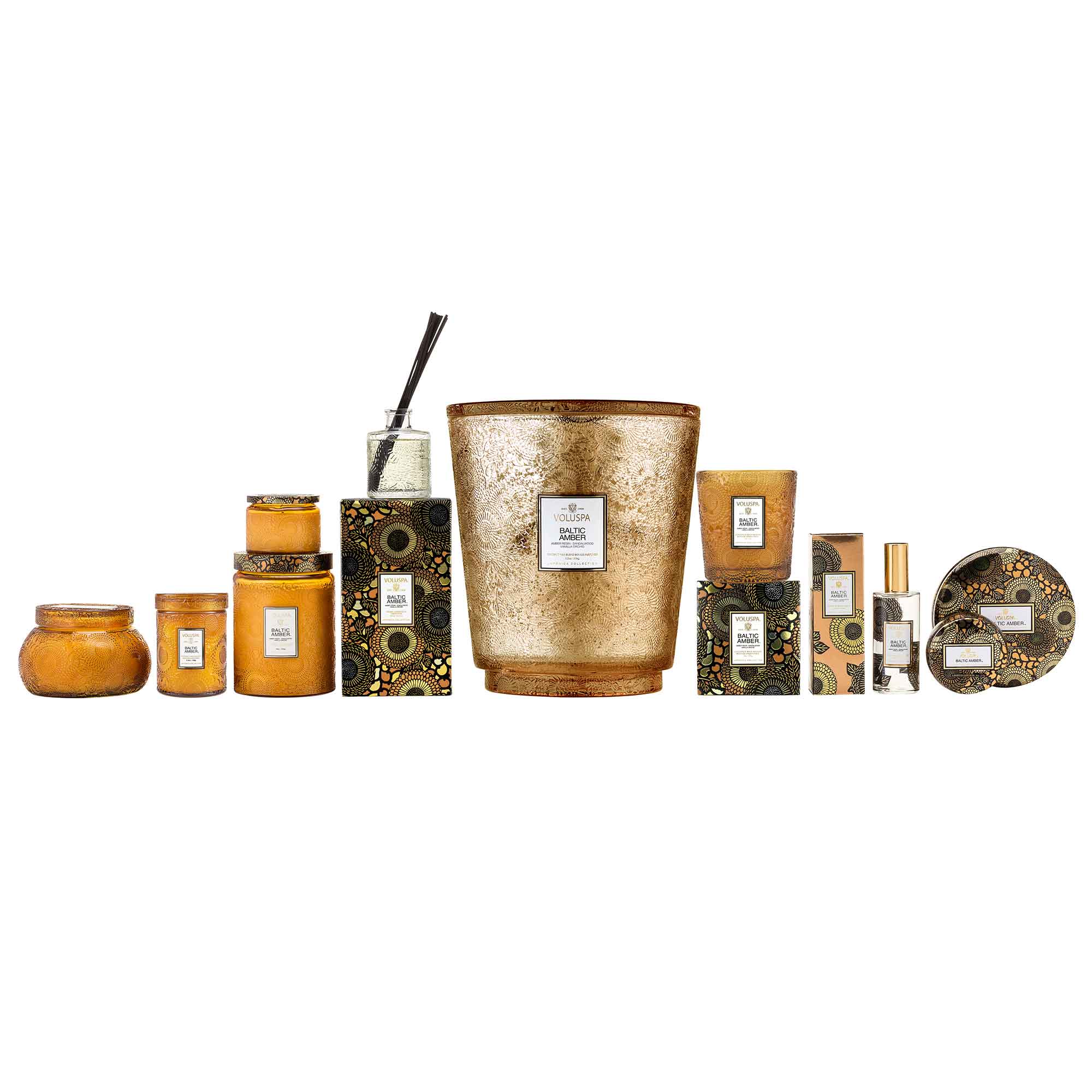 Warm up the ambiance with a sensual soirée of honeyed Amber Resin, velvety Woods and the rich incense of smoldering Vanilla Orchid. Bask in the swoon-worthy golden glow that radiates lingering warmth. Fall under Baltic Ambers spell and prepare to be enchanted…